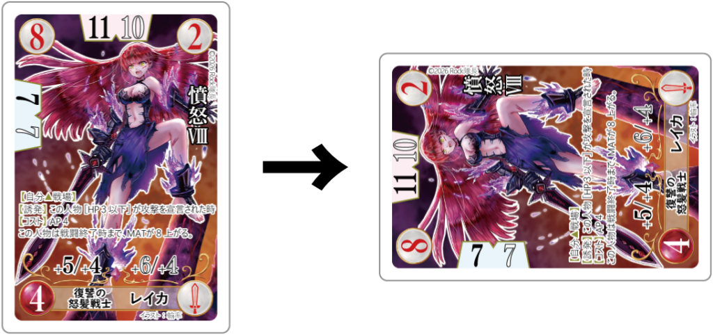 レイカが物理攻撃を宣言されていた場合、「レイカのATK11」と「ロディーナのDEF5」でダメージ計算を行います。