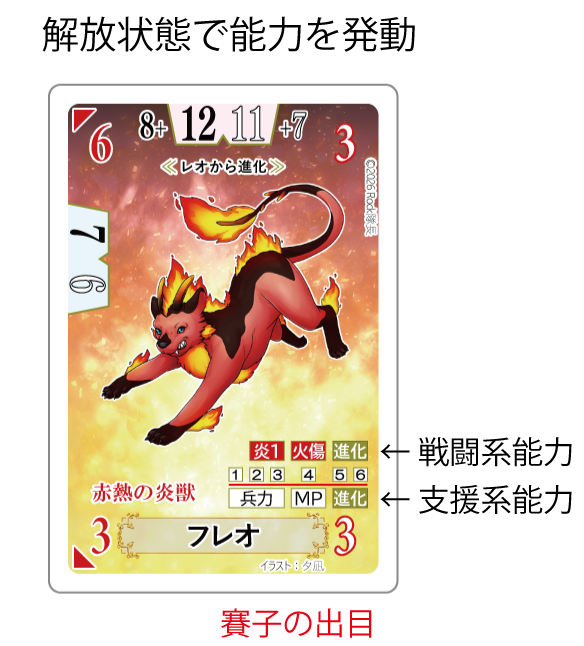 ※解放状態で能力を発動した場合、支援系と戦闘系のどちらを適用するかは賽子を振った後に選択します。
